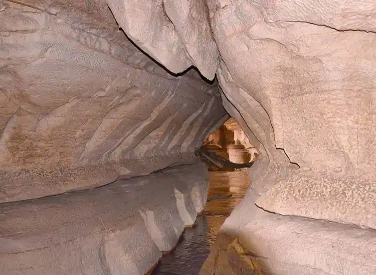 The Web River flows through the cave, adding to the dramatic scenery. Visitors usually explore the cave with a guide. The best time to visit is outside the rainy months when flooding can occur.